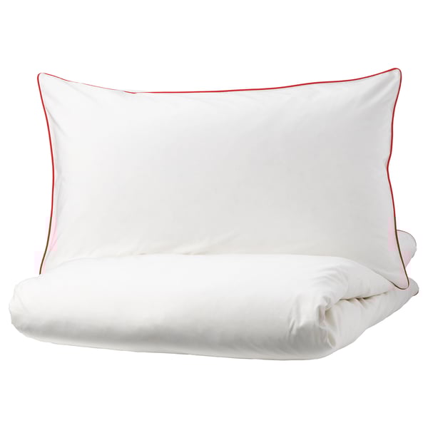 Kungsblomma غطاء لحاف 2كيس مخدة أبيض أحمر 240x220 50x80 سم Ikea