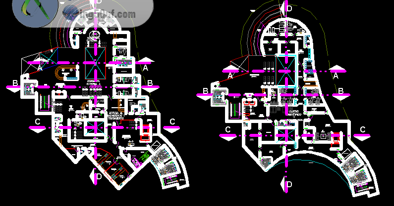 مخططات معمارية لمستشفى من عدة طوابق كاملا اوتوكاد Dwg
