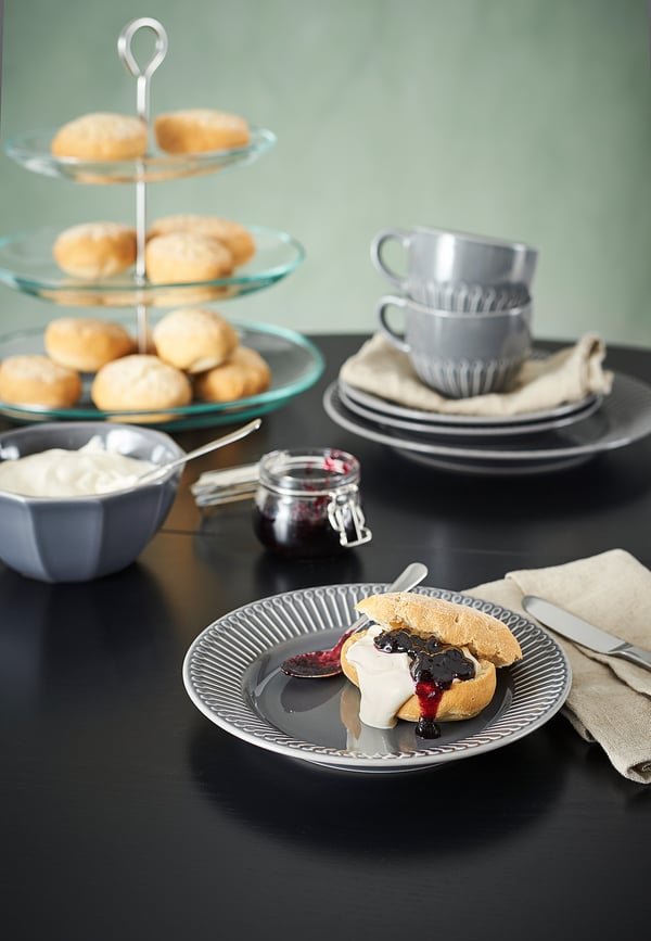 Dinera طقم تقديم من 18 قطعة رمادي غامق Ikea