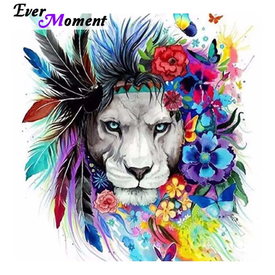 من أي وقت مضى لحظة Diy بها بنفسك الماس اللوحة جميلة ملونة الأسد باردة مع ريشة وزهرة فراشة الحيوان التطريز Asf1003 لوحة ماس بغرز متعامدة Aliexpress